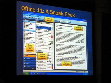 また、オフィス環境の変化についても触れ、「企業システムはXML準拠へと急速に移り変わりつつあり、様々な情報を標準的な手法で受け渡すことが可能になってきた。構造化された文書もXMLなら簡単に残せるようになり、オフィスでのペーパーレスも進んでいる。Office XPに付属するSharePoint Team Serviceのような、新しいコラボレーションの形態も形になってきた。個人に必要とされる情報を、きちんと管理・整理して閲覧する環境もある。来年の夏に投入を予定している次期Microsoft Office(Office 11)でも、様々な変化が起こるだろう」と話した。