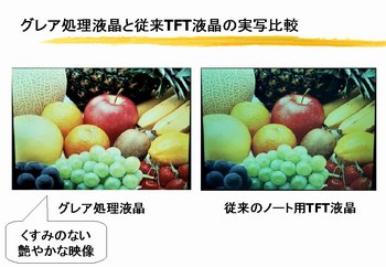 「昔のPCは、文字入力を主体とした“仕事の道具”だった。そのため、文字を見るために最適な方法として、光の反射を極力抑えた画面処理を行った。しかし、最近のPCはデジカメの画像処理やDVD再生など、画像や映像が中心。利用形態が変われば、ディスプレイも変わっていかなければいけないはず」(平松氏)。
