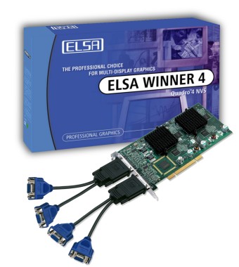 「ELSA WINNER4 200 NVS」は、Quadro4 200 NVSを搭載。64MバイトDDR SDRAMをVRAMとして装備する。コアクロックは250MHz、メモリクロックは166MHz。インタフェースはLFHコネクタ×1。別売りのLFH分岐ケーブルで、2系統のアナログ出力(D-Sub15ピン)/DVI-I出力に対応する。