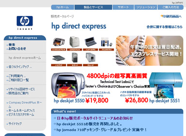 日本HPは、個人向け直販サイト「hpselect」と法人向け「hp direct」を統合。新たに「hp direct express」(http://www.hp.com/jp/hpexpress/)を開設した。新サイトでは、コンパック製品情報も提供する。また最短の場合翌営業日に納品する「エクスプレスサービス」を導入した。