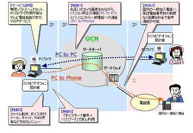 オプション料金は月額300円。加入電話への通話には3分当たり25円がかかる。PCカメラやマイクなどはユーザーが用意する必要がある。対象プランは「OCNダイヤルアクセス」「OCN ADSL接続サービス」「OCN光アクセス」。
