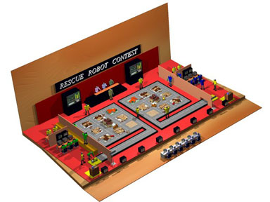 阪神・淡路大震災の経験を踏まえ、ロボットを活用した救助技術の向上と一般への啓蒙がねらい。競技では1/8スケールの市街地にダミー人形を配置。ロボットの無線カメラ画像を見ながら遠隔操作し、障害物やがれきを取り除いてダミーを救助して連れて帰るのが目的だ。作業時間や救助活動の達成具合などから評価して優秀チームを表彰する。書類審査を通過した12チームが参加する。