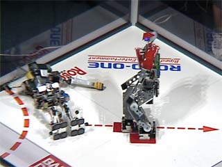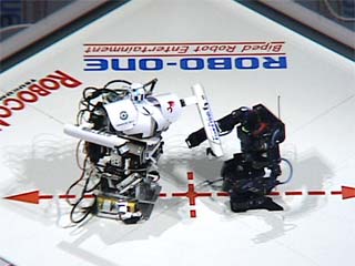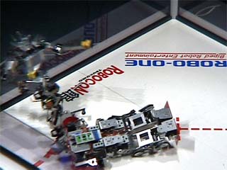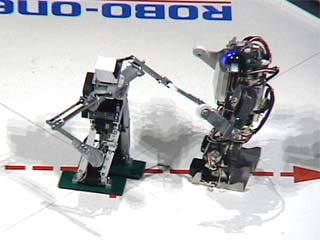 熱戦続きの2回戦だけど、第4試合は比較的一方的な試合になった。ガングー1のリーチの長いパンチが面白いように剛王丸をつかまえてしまうのだ。剛王丸は、自分の間合いに詰めることができない。結果、3対0、5対0でガングー1の勝利(前の試合に比べて、あっさりまとめちゃってる。すみません)。ガングー1はかわいい見かけに似合わず、かなりバランスの取れた強いロボットだ。