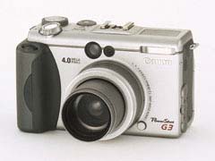 コンパクトモデルの最上位機「PowerShot G3」(11月下旬発売、オープン価格、実売予想価格は9万円前後)は1/1.8型有効400万画素CCDを搭載。レンズのズーム倍率が従来機種「PowerShot G2」の3倍から強化され、35mmカメラ換算で35−140mm相当の4倍ズームになった。