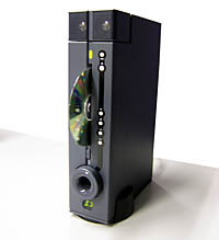 サイズは32.5(高さ)×23(奥行き)×8.8(幅)センチ、重さ約2キロ。ほぼB4サイズの本体中央にスロットインCDプレーヤーを配置し、上部に3ワット+3ワットの3センチフルレンジサテライトスピーカー、下部に3ワットの6センチウーファーを搭載。本棚などに設置できるコンパクトオーディオだ。