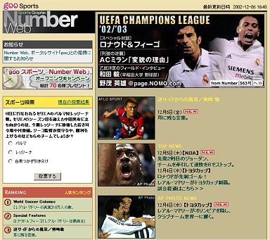「Number Web」は、定評がある「Sports Graphic Number」のWeb版としてNTTPCコムと共同で2000年6月に開設されたもの。ユーザー拡大を図り、gooスポーツでもコンテンツを提供することにした。目標は月間1000万ユニークユーザー。