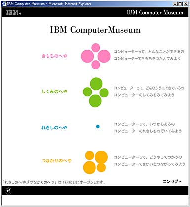 リニューアルではFlashを多用してエンターテイメント要素を強化。「きもちのへや」「しくみのへや」「れきしのへや」「つながりのへや」の4メニューで構成する。