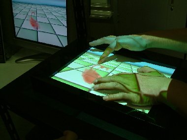 ソニーコンピュータサイエンス研究所の暦本純一氏と東京工業大学の福地健太郎氏による共同研究が、タッチセンサー風の「SmartSkin」を応用したゲームのプロトタイプであった。