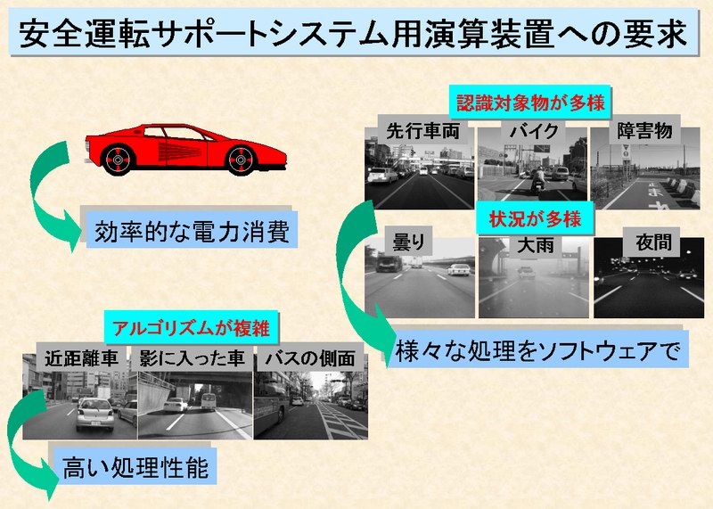 だが、その実現には、さまざまな問題が山積している。その1つが、安全運転支援システム用の画像認識処理装置に求められる“ハードルの高さ”だ。