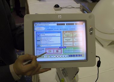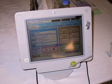 LSS専用端末は日立製作所のIA(インターネットアプライアンス)端末「FLORA-ie 55mi」を使用。タッチパネル方式を採用した本体は、バッテリ駆動で無線LAN(802.11b)を内蔵しているため、さまざまな場所に持ち出してインターネットを楽しめる。