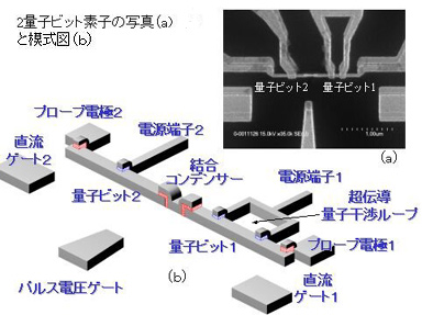 量子コンピュータが実現するための物理的条件として、「量子重なり合い」と「量子絡み合い」と呼ばれる2つの状態を満足させないとならない。このうち量子重なり合い状態は、同じNECと理化学研究所のグループが1999年に、1つの固定素子で構成される量子コンピュータで作り出すことに成功している。