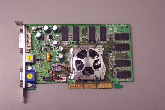 SP8834DT-128はGeForce FXシリーズの最廉価バージョンGeForce FX5200を搭載したビデオカード。実売価格は約1万6000円。GeForce FX 5200のスペックはコアクロック250MHzにメモリクロック400MHz(DDR SDRAM)。最上位機種のGeforce FX5800 Ultraと比べて半分以下となっている(ちなみにSP8834 DT-128に搭載されてるのはGeForce FX5200 Ultraでない。こちらはコアクロック325MHzにメモリクロック650MHz)。