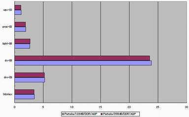 今回測定した限りでは、128Mバイトバージョンも256Mバイトバージョンもパフォーマンスに差は出なかった。テストによっては128Mバイトバージョンが上回っているケースもあるが、ほとんど誤差のうちに入ってしまう。
