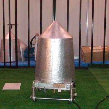 最後に、日本文理大学の空飛ぶロケット「霧隠才蔵」。タンクに入った水を沸騰させてスチームを発生させ、それを噴射することで飛ぶのだ。