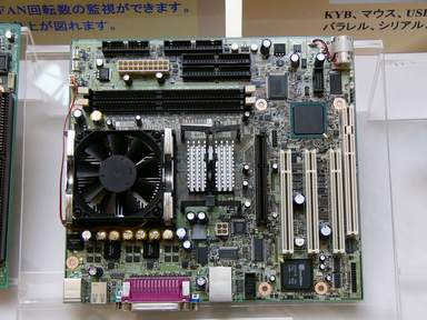 リコーが展示していた「FB6M」と「EB1」は組み込み機器用のマザーボード。EB1はフットプリントが203×146ミリメートルに定められたEBXフォームファクターに準拠しており、Soket370とIntel 815E(Bステップ)を搭載する。組み込み用途なので、LAN×2、シリアル×4、USB 1.1×4、CFカードスロットと、インタフェースがかなり充実している。