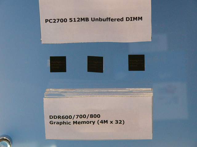 メモリベンダーのNANYA TECHNOLOGYは、デスクトップ向けDDR SDRAMモジュールとビデオメモリモジュールを展示。テスクトップ向けモジュールでは、PC3200/512MバイトにPC2100/1Gバイトといった、高速大容量モジュールが注目を集めていた。