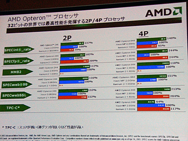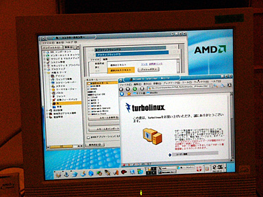このほか、会場では2way Opteron対応マザーボードの展示、Opteronが動作するワークステーションやWindows Server 2003(ネイティブ64ビット対応)、Toubolinux 8 for AMD64ベータバージョンのデモが行われた。