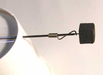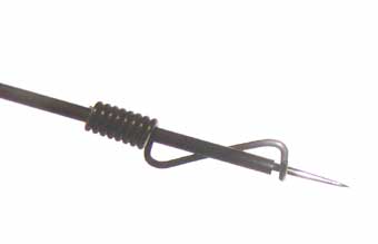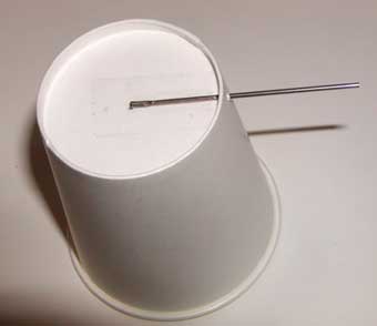 振動子と平行に針のためのパイプ(振動を伝える部分だ)を貼りつけて、その先に針をさしこむ。