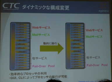 また、ほかのベンダーで開発、販売されているモジュラーコンピューティング対応製品と比較して、PANを実装したEgenera BladeFrameは「ストレージをすべて外付けユニットにしたDisklessであることと、PANによってサーバを仮想的に立ち上げられるので、Fail-Overやサーバ再割り当てなどで、ブレードサーバの構成を変更するときに、10数秒といった短い時間で対応できる利点がある」(浦川氏)と述べている。