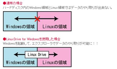 Windowsにインストールすることで、同じPCにインストールされたLinux領域のファイル操作を可能にするユーティリティソフト。WindowsエクスプローラからLinux領域を操作できるようになり、Linux領域のフォーマットや新規作成・削除も行える。
