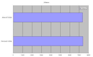 比較データは、同じ環境で測定を行ったAthlonXP 3200+ とnForce2 Ultra 400を組み合わせたスコアを用意した。