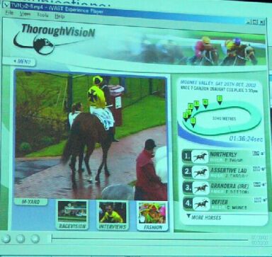 この中で紹介されたシステムは、複数のカメラからの映像をユーザーが任意に切り替えられるライブ配信システムや、動画、3Dデータ、テキストデータを一緒に配信できる電子カタログ、一回のアクセスでマルチビジョンを実現できる複数拠点監視カメラシステムなど、MPEG-4の特徴である「マルチオブジェクトコンテンツ」のメリットを生かしたものがほとんど。