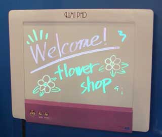 ショップなんかで商品のPOPに使ったり、カフェなんかでメニューを書いたりするのようなパネル。その後ろに無機ELがしこまれていて、蛍光ペン(水性)で書いた文字が光るというもの(*4)。