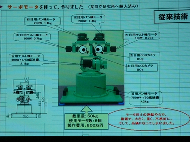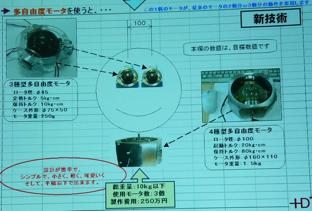 開所式で発表された共同研究開発プロジェクトのテーマは、お向かいの国際レスキューシステムに関連したもので、名称は「位置情報フィードバックが可能な多自由度モータに関する研究開発」。