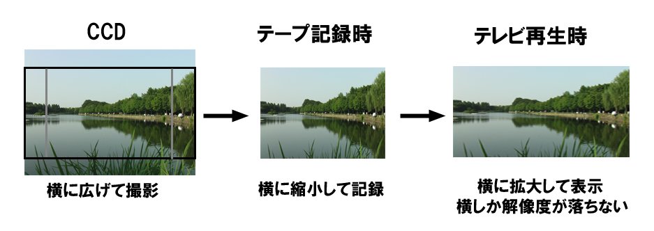 しかし200万画素クラスのCCDを使えば、Wideモードにしたときに、縦を切るのではなく、本当に横を伸ばすことができる。従って解像度の面で、従来とは比較にならない。今まで割とインチキクサイ目で見られて日陰者扱いであったWideモードだが、メガピクセルCCDの恩恵を最大限に享受するには、Wideモードで使ってこそなのだ。