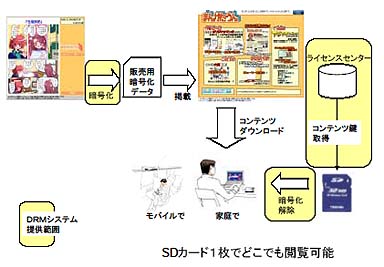 東芝は8月26日、SDメモリーカードを使ったデジタル著作権保護(DRM)システムの実証運用を10月に始める。毎日新聞社のデジタル漫画サイト「まんがたうん」が展開する漫画の有料ネット配信サービスに導入する。