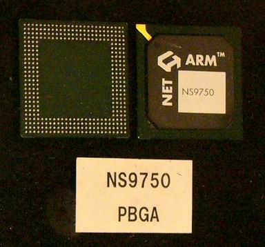 NS9750のパッケージは352ピンのBGAでダイサイズは35×35ミリ。CPUコアは32ビットのARM926EJ-Sを実装して命令キャッシュ8Kバイトにデータキャッシュ4Kバイト用意している。