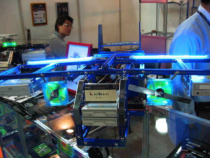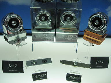 例えば、先頃幕張で行われたWPC EXPO 2003でも少々話題になったCooler MasterのJETシリーズ。ケースに内蔵するCPUファンの形がジェットエンジン形だろうが便器の形だろうが意味はないような気がするが、WPC EXPOでもかなり話題になったようだし、ここCOMPUTEX TAIPEIでも最終日に一般参加らしき高校生が熱心に見たり写真を撮ったりしていたところを見ると、案外ヒットするかもしれない。