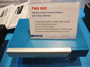 もう少しPCに近いような、HDDが搭載できるルータとPCの中間のような機器も展示されていた。組み込み型機器の製造などで著名なADDVANTECHからは、FWA-660というインターネットセキュリティプラットフォームが展示されていた。