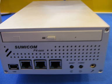 すると小型のベアボーンブランド「SUMICOM」で知られているKing Young Technologyより、前面に3基、背面に1基のEthernetポートを搭載したPentium 4システムを発見した。ルータと言うには少々大きいがPentium 4を使えば、ルータでボトルネックになりそうなSPAM処理やウイルスチェックも高速に行えるのではないだろうか。