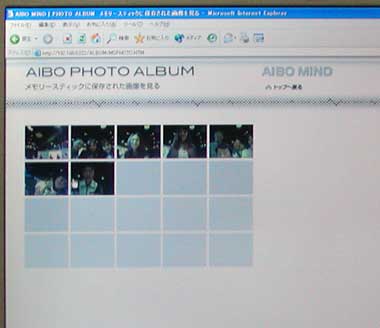 撮影した写真は無線LAN(IEEE 802.11b)経由でPCから見ることができる。このとき、AIBO内部で生成されたHTMLファイルをブラウザから見るというスタイルをとるので、マシンやOSの種類は問わない。Macintoshからでもいじれるのだ。