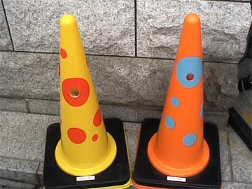 こういうことやってみて初めて知ったのだけど、パイロンって街にいっぱいあるのだ。しかも、よくある赤いのだけじゃなくて、白いのとかピンクのとか、すごくたくさんある。普段意識していないものを意識させられたってことは、これはやっぱりしっかりアートだったんだなと認識。