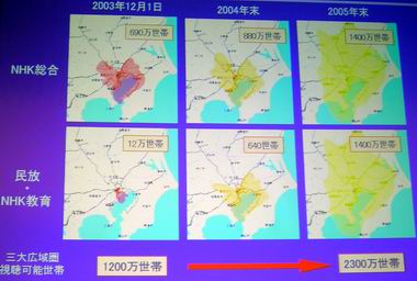 2003年末に東京・名古屋・大阪の3大都市圏でスタートした地上デジタル放送は、2006年までには全国展開が図られる見込み。視聴可能世帯も2006年には2300万世帯にまで拡大する。