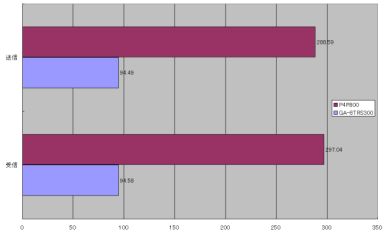 さらにメモリ周りのベンチマークの結果をみると両者の差が大きくなってしまう。。P4P800のテストは、メモリアクセラレーション機能をオフにして計測しているが、それでもメモリバンド幅、メモリアクセス速度ともに、GA-8TRS300Mは差を付けられている。