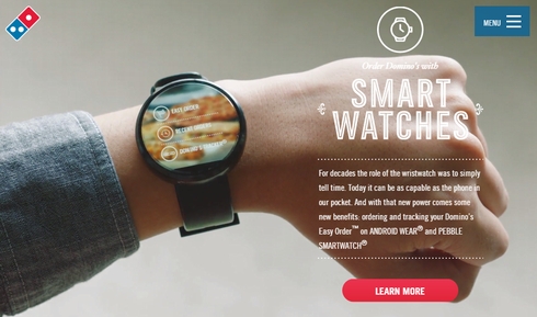Domino'sは早くからオンライン注文に取り組んでおり、2007年にはオンライン注文に対応。現在はモバイルアプリやSamsungのスマートTV、Android Wear端末、Ford Syncからの発注が可能になっている。