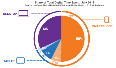 comScoreは、「モバイルアプリは既にここ数年でインターネットに接続するための最も重要なツールになっているが、シェアが50%になったのは、スマートフォンがいかにわれわれの生活の中心になったかを示している」としている。