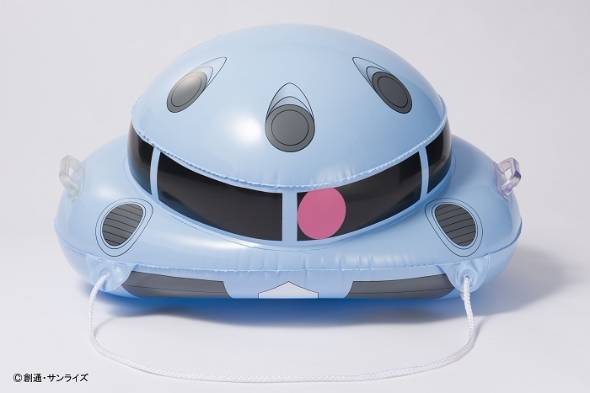 「アッガイ フロート」(税込5184円)は特徴的な頭部がモチーフ。膨らませると100センチになり、成人男性でも十分な浮力を得られるという。また、頭頂部にはしっかり捕まれるよう「取っ手」が2基ついている。