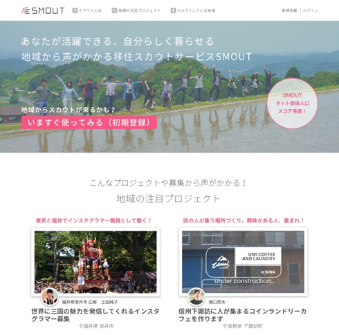 カヤック子会社のカヤックLivingはこのほど、移住希望者と地域のマッチングサービス「SMOUT」(スマウト)を公開した。自分の興味関心や得意分野を登録しておくと、地域から仕事依頼などの「スカウト」が届く“移住スカウトサービス”だ。