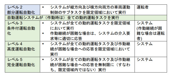 自動運転の定義については、さまざまな公的機関や研究機関がまとめている。例えば、内閣のIT総合戦略本部が毎年改定している「官民ITS構想・ロードマップ」には、JASO(日本自動車技術会)の「自動車用運転自動化システムのレベル分類及び定義」が採用されている。