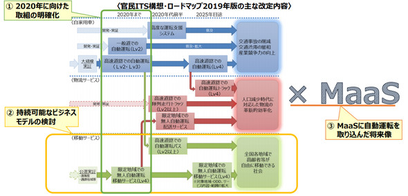 官民ITS構想・ロードマップ2019では、高速道路でのレベル3自動運転を20年に実現することを目指している。レベル4が実現されるのは25年になる見通しだ。こうした自動運転の実用化に向け、各地で取り組みが進められており、18年度以降だけでも、日本国内のおよそ30の地域で自動運転の実証実験が行われている。