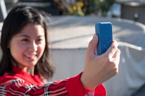 細くて軽いので自撮りも簡単。
