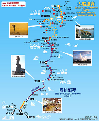 ちなみに「駅」という呼び方ですが、BRTの場合は、一般乗合旅客自動車運送事業での「停留所」が正しい呼称です。ただし気仙沼線と大船渡線の場合は、元鉄道ということもあって全て「駅」となっています。