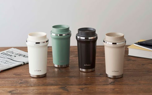 真空断熱層の内側に吸熱剤を入れた真空3層構造タンブラー。80℃の飲み物を入れると3分後には約67℃になり、1時間は60℃台をキープするとしている。