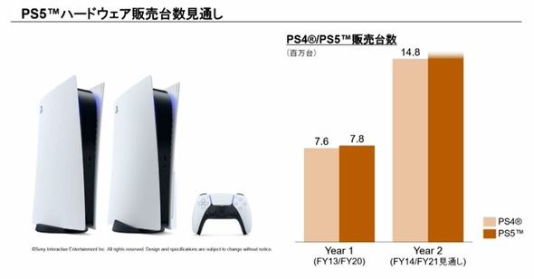 同社は4月28日の業績発表で、2020年度のPS5の販売台数は780万台で、2021年度は1480万台以上を目指すとしている。