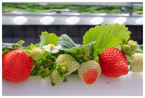 N.BERRYは、いちごに適した灌水/空調システムとLED照明を備えた屋内の「いちごプラント」で生産した。いちごの旬は1月下旬から3月と短いが、いちごプラントなら季節の影響を受けず、「いつでも、どこでも、誰でも高品質ないちごを安定的に生産できる」。