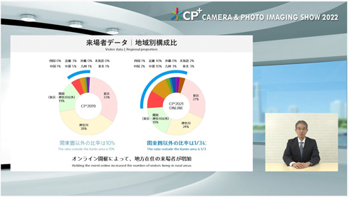 キーノートスピーチはCP+を主催するCIPA(カメラ映像機器工業会)の石塚茂樹代表理事会長が「動画とカメラの未来」というタイトルでカメラ業界の現状を語った。